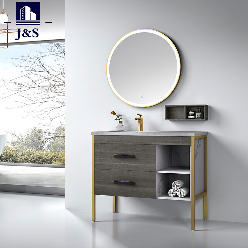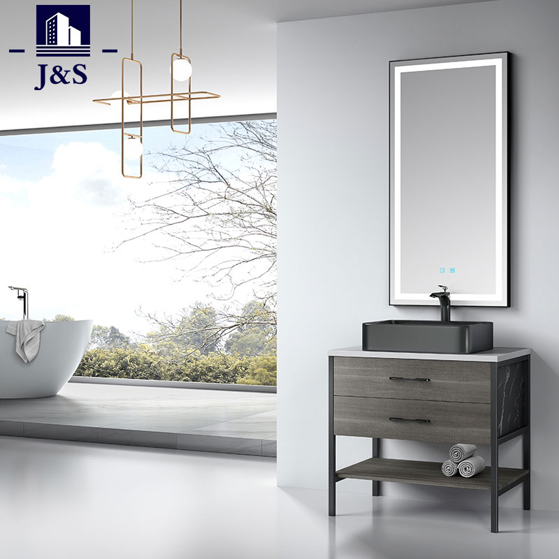 J&S ले आधुनिक रस्टिक बाथरूम क्याबिनेट सेट कर्नर आपूर्ति गर्दछ। यस बाथरूम भ्यानिटीको डिजाइन एल्युमिनियम फ्रेम, प्लाइवुड क्याबिनेट बडी, ट्यान्डम बक्स ड्रअर रनर, क्वार्ट्ज टप भ्यानिटीका लागि डर्बेल र बलियो सामग्री हुनेछ। मिरर ह्याङ्गिङले ग्राहकहरूको आवश्यकता पूरा गर्दछ।