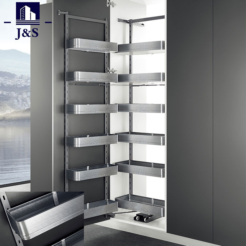 सफ्ट-स्टप टल लार्डर आयोजक पुल आउट प्यान्ट्री युनिट बास्केटको उपस्थिति देखि, विभिन्न प्रकार्य र शैलीहरू बिस्तारै विकसित भएका छन्, जसमा मुख्यतया मसला पुल टोकरीहरू, बाउल पुल बास्केटहरू, कुना पुल टोकरीहरू, दराज पुल टोकरीहरू, उच्च र गहिरो पुल टोकरीहरू, आदि समावेश छन्। फाइदाहरू अझै पनि सबैले मान्यता पाएका छन्।