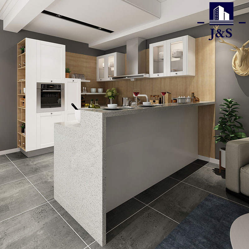 J&S आपूर्ति थर्मोफोइल क्याबिनेट ढोका PVC कपाट अगाडि। उच्च गुणस्तर MDF शेकर प्रोफाइल pvc अलमारी ढोका।