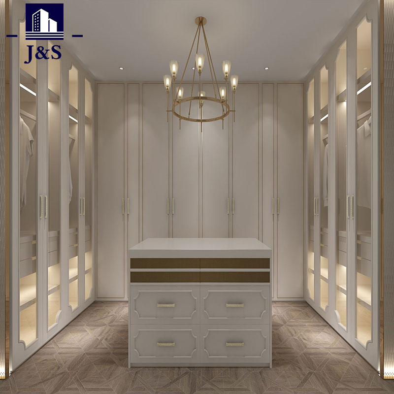 लेआउट र कन्फिगरेसन: तपाईंको वाक इन क्लोसेट क्याबिनेटहरूको लेआउट उपलब्ध ठाउँ र तपाईंको भण्डारण आवश्यकताहरूमा निर्भर हुनेछ। सामान्य कन्फिगरेसनहरूमा अतिरिक्त भण्डारणको लागि केन्द्रीय टापुको साथ भित्ताहरूमा L-आकारको, U-आकारको, वा सीधा क्याबिनेटहरू समावेश छन्।